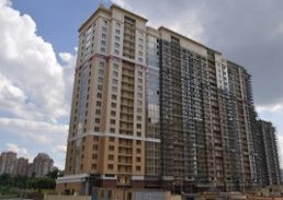 В доме номер 1 утепляется фасад, устанавливаются рамы балконов и двери, выполняется отделка общественных мест. Монтаж фасада выполнен на 25%.